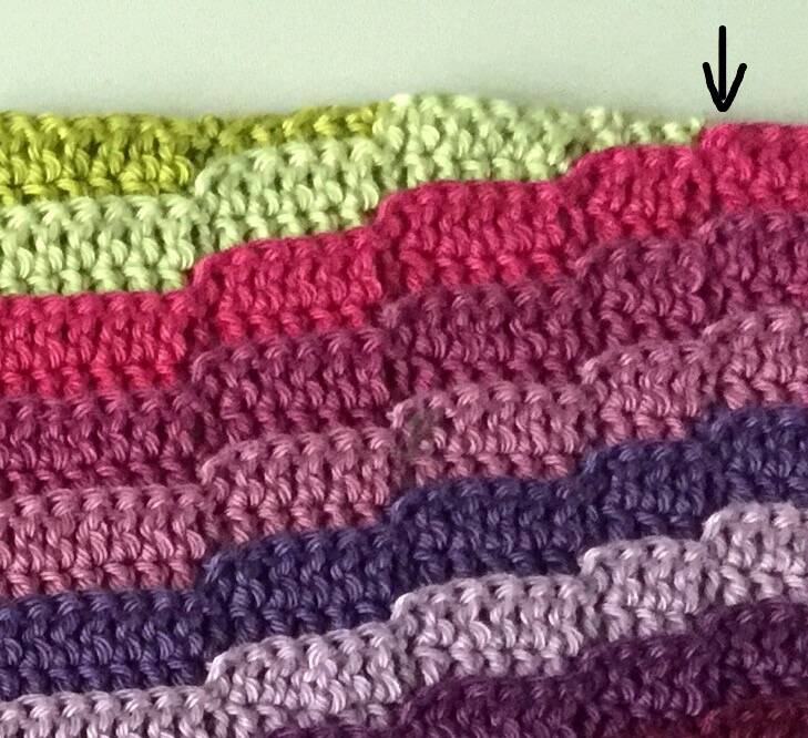 Nieuwe kleur aanhechten en de tweede rij herhalen.