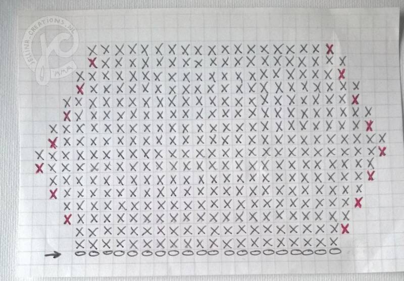Een halve ruit haak je door gewoon te stoppen als je bij de 15 steken bent.