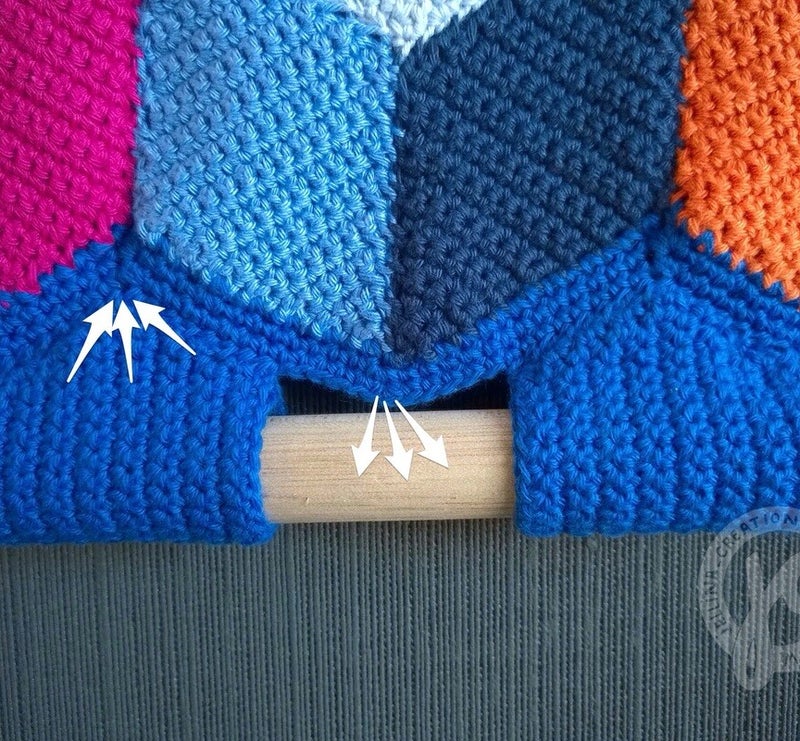 Omdat het een wandkleed wordt moeten er nog ophang lussen gehaakt worden.