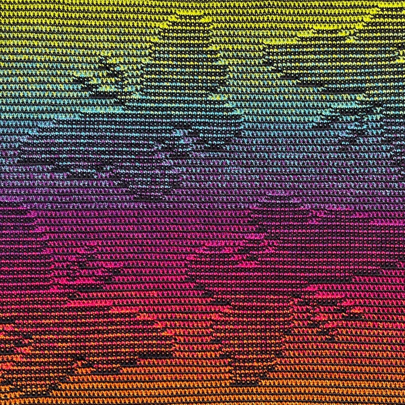 De sjaal is gehaakt met 1 Whirl (Scheepjes) kleur 792 Rainbow Popsicle en 2 Whirlettes (Scheepjes) kleur 851 Liquorice